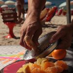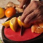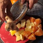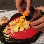 1-Cortar o limão e tangerina e macerar com açúcar e raspas de gengibre